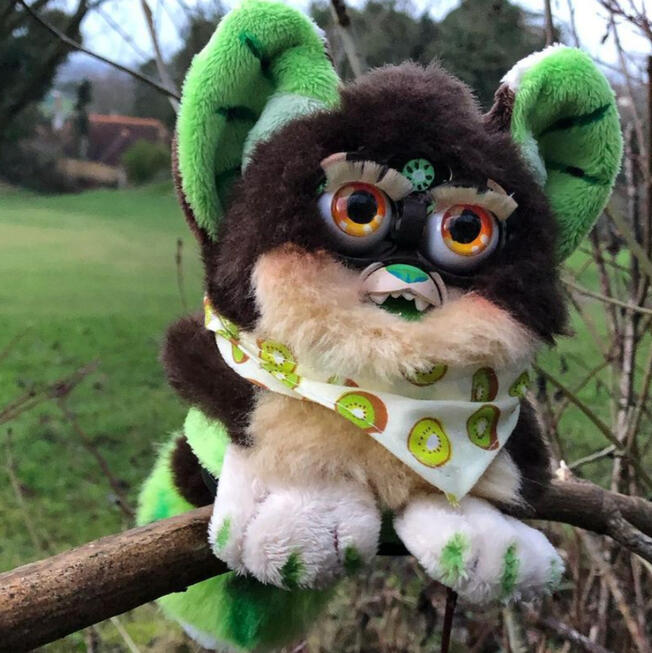 I create art, fursuits, custom furbys and plushies!